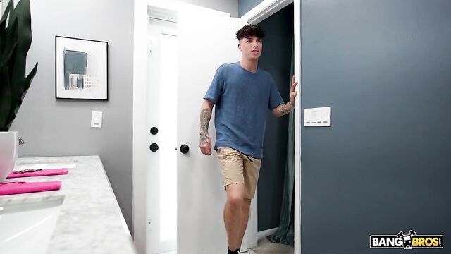 Description:Axel and Ethan are trying to study but they just can’t concentrate. To make matters worse, Axe’s stepmom comes in and asks for a special shower rub down. Ethan, confused, asked what is all that about? He explains that whenever she is tired she likes it when he helps her in the shower. He can’t believe it, not only does he have a hot stepmom but he gets to shower with her. Stepmom even says that he can join in and help. They are both not gonna waste the opportunity and go have some fun with her in the shower. This leads to a wild session where they both take turns banging stepmom and getting their dick sucked in the shower. All eventually going to the bedroom where they fuck her some more and takes two huge loads all over her face.