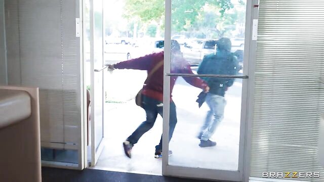 Description:Lucy Lotus is bored working a slow day at the bank when she spies the guard sleeping at his station. Lucy takes the opportunity to get busy with coworker Damion Dayski behind the teller station. Little do they realize, Red Eviee has a stick-up robbery planned and catches Lucy with a mouthful of dick and Damion with his pants down. As Lucy empties the safe, Damion shows off his massive hard cock to Eviee, who can’t resist taking it for a spin. A threesome breaks out which is the perfect distraction for Eviee’s accomplices to empty the rest of the bank unnoticed as she gets her kicks and a wad of cum, too.