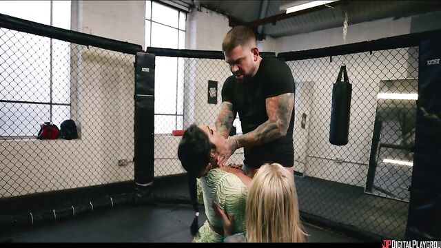 Description: As Brianna Garcia starts to win fights in the MMA world, it puts her on the radar of Jerry Finch, who suggests her for the match to get champion Hayley Logan's fans buzzing again. Hayley couldn't care less about the scrappy upstart... until she sees she's fucking trainer Chris Diaz! The champ vows to destroy Brianna, and Jerry brings a title fight contract--and hot ring girls Annabelle (Yasmina Khan) and Cynthia (Ali Rose)--to Chris's gym. While Jerry goes to introduce himself to the fighter, the sexy women get to know Chris better, pulling his cock out in the octagon and sucking it, then seeing how it feels to get pinned by the MMA star on the mat! Then they pin him, riding his face and cock, before they share his load... just in time for Brianna to catch them! She's in for the fight, but can she win without her trainer?