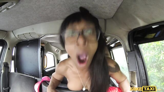 Description: There I was, parked on the side of the road just tugging my dick to pass the time, when Lola Marie walked up at the window and caught me in the act. Turns out that cheeky broad had snapped a couple pics, and delighted herself in rubbing it in. Before this naughty ebony girl would delete the pictures from her phone, she wanted to see my cock for real, and asked me to get in the back with her and flash it. Of course, once I'd taken out my pecker, Lola dove on it, and started sucking me off with her dick-sucking lips. Lola sat her juicy arse down on my face, then deepthroated my cock while I ate her ass. After Lola gave me a rimjob, I bent her over the divider and pounded her nice and hard from behind, fucking her in the butt for a bit, before I blew a big nasty facial cumshot all over her glasses!
