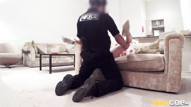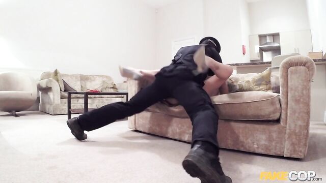Description:Any girl like Jade Wilson who's going to stand stark naked in her kitchen and leave her windows wide open is asking for some kind of attention! As a matter of public safety, I had to slip into her apartment and let her know as an officer of the law that I was concerned. It didn't help my case that I was sniffing at a pair of her panties when she walked back in the room, but Jade fancied a handsome bloke in uniform and gave me a second chance. Before long, this cockhound was gagging on my dick, deepthroating the whole shaft like a real pro. I had her bent over the couch next, knuckle-deep in her sweet-tasting twat, before she jumped on for a ride of my old police baton!
