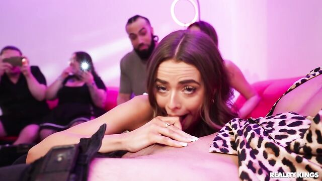 Description:Selina Bentz and Nikki Nicole aren't too impressed with their first-ever college party, but luckily James Angel and Mike Skywalker arrive to liven things up. After some water pong, the college students play a game of suck and blow that lets Selina kiss both James and her bestie and ends with Nikki sucking Mike! While everyone's distracted by the BJ, James and Selina steal off to the bathroom to fuck. Nikki's still horny so she, Selina, and James sneak to the dorm room for a threesome and have way more fun at their private party!