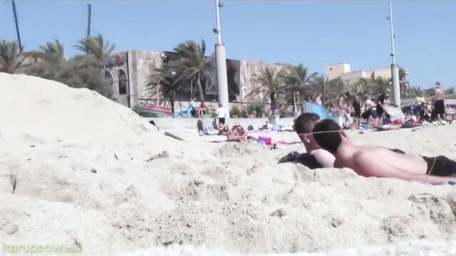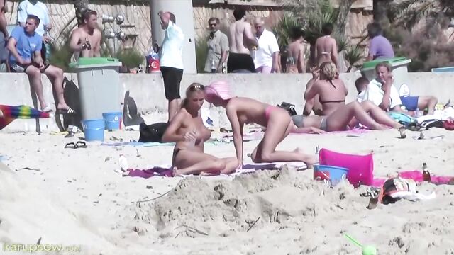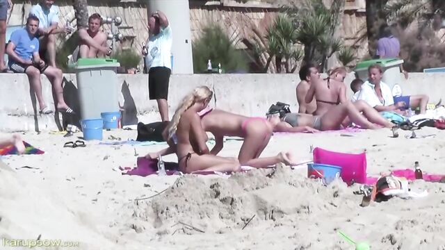 Public sex game on the beach with hot babes Anna Wolick and Natalie Albright
