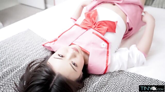 Description: Cute Asian cosplayer teases her clit with a vibrator before getting stuffed with a big cock!
