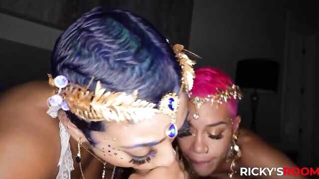 Description: Two Goddesses walk into my room. Oh, this isn't the start of a joke. They actually did! Jasmine Banks and Ms Sapphire turned my world upside down with nothing but their talented mouths. Good thing my cock knows how to stay hard even after being handled by these ladies, because Ms. Sapphire needed a little something extra.