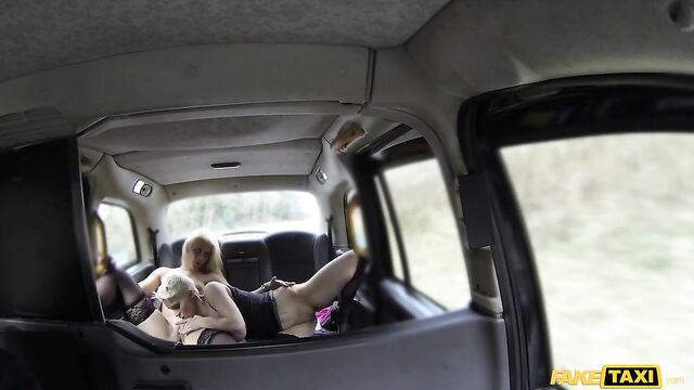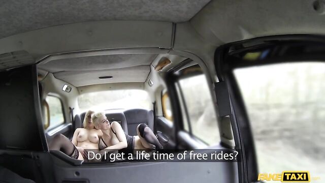 Description: Real nice of these two hot blonde nymphos from Amsterdam to put on a show for me in the back of my cab. Mila Milan and Debby Pleasure looked like two straight-laced beauties from the outside, in their long coats and black dresses, but they showed their true selves when I told them about the London tradition of offering free rides to women who flash their tits. Without batting an eye, Mila and Debby got their boobs out and started motor-boating each other. As their clothes came off, their wild sides came out and these put their tongues to work in the back seat. Fingers crossed they'll want to add a cock to the mix.