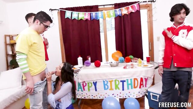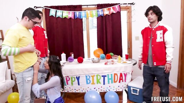 Description:Connor’s football buddies, eager to celebrate his upcoming birthday, meticulously plan a surprise party. What they don’t know is that Connor has been dealing with a severe case of social anxiety, and he’s not the guy they used to know. When he and his girlfriend Aria arrive at the secret party place, a chorus of “Surprise!” erupts, triggering Connor’s anxiety. In order to cope with it, Conor and Aria become unexpectedly intimate, displaying some serious PDA with an extra dose of kinky play. A palpable awkwardness invades the room as Connor’s buddies try to figure out what’s going on. The bewildered men suggest leaving the room for them to have some private fun, but Aria and Connor soon explain that the only way they could find to help Connor manage his anxiety was having a freeuse relationship. Being able to grab his girlfriend’s ass and fuck her at will eases Connor’s anxiety, and his friends, supportive as ever, eventually get behind it.