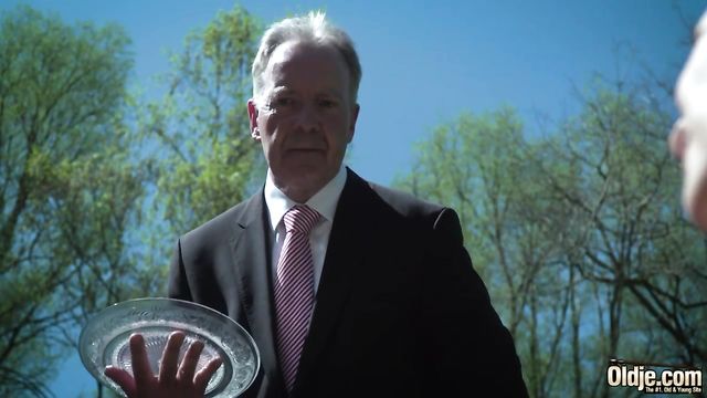 Description:Gina Ferocious is sunbathing as her butler Boris serves her a lemonade. She starts applying sunscreen all over her big tits and asks Boris to do it for her. He hesitates at first, as this is not a part of his job, but he has to please his young slutty boss. He takes her orders and undresses, so the bossy brunette starts giving him a blowjob. He caresses her in doggy position and eats her young juicy pussy as they get into 69. The obedient butler applies sunscreen on her again as he fucks her between her tits. She bounces on his old dick in reverse cowgirl. After the old butler cums in her mouth, she asks him to bring her a coffee, for a change of taste.
