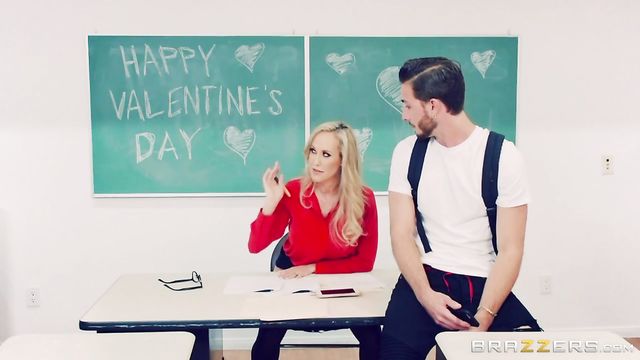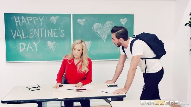 Description: Brandi's a hot, love-starved teacher who despite her big tits can't seem to land a man. Alone again on Valentine's Day, she grades papers in her empty classroom - but decides to celebrate the holiday by fucking her favorite dildo at the same time. Just when she's about to cum one of her slacker students drops by, and Brandi decides to take charge of her love life by giving him a taste of teacher titties!