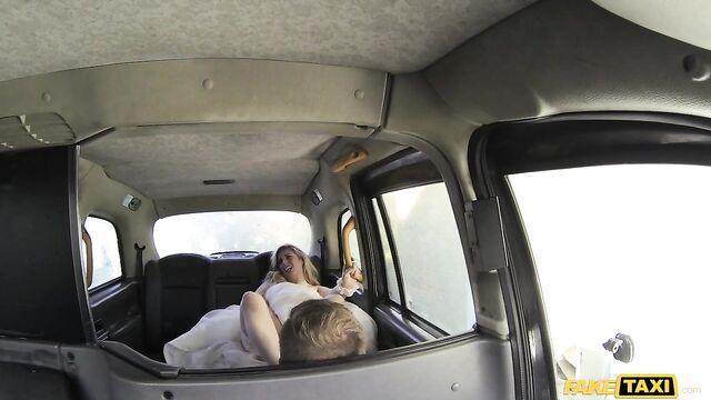 Description:As I was sitting in my cab going through some bookings, the cab door opened and in jumped a hot blonde in a wedding dress. She was screaming at me to drive as she just wanted to get out of there. I was a bit confused, but I started to drive off. I asked where she wanted to go and she said she didn't care, anywhere but outside the church. She said she had just left 200 people waiting there and she could not marry her future husband as she was fed up with his small cock. The thought of never having a big cock for a good shag had sent her over the limit and so she bolted. Then she started flirting with me, I've got to be honest, a woman in a wedding dress who was just about to get married did turn me on. We agreed to pull up so I could show her what a real cock can do. Johns going to love this video, he's not the only one who can get a bit of pussy.