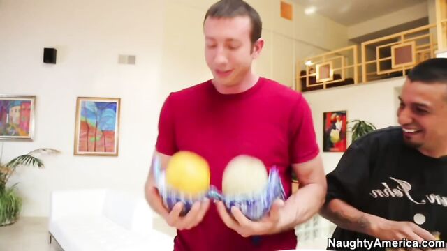 Description: Vicky Vixen is doing laundry, and Jordan and his bud check out her laundry basket and find the bras that hold her giant tits! Jordan's been wanting to see them forever, but Vicky's so uptight, it won't ever happen. But when Vicky overhears them talking shit and sees them playing with her undergarments, she gets loose and unleashes her big boobs for Jordan to fuck and suck!