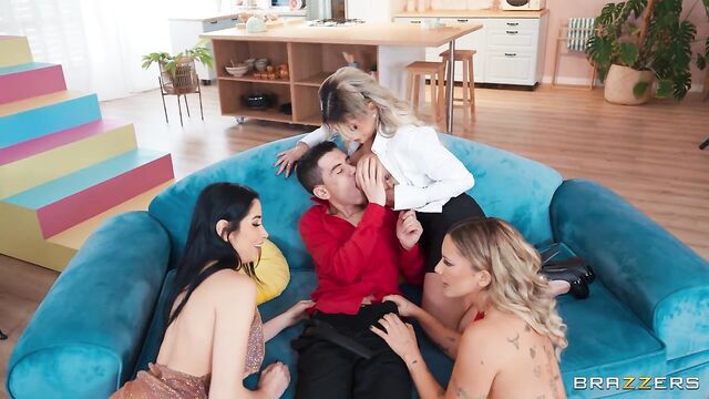 Description:Behind the scenes of the latest ZZ telenovela, we learn that the show’s stars’ lives (Niky Bimbodoll, Clea Gaultier and Kenia Music) are just as dramatic as the characters they portray on screen when they find out Jordi is as big a cheater as his character is! Hot and messy chaos ensues when the trio of babes compete for his affection, leading to a competitive four-way fucking that won’t end until they’ve drained every last drop of cum out of Jordi’s big cock!