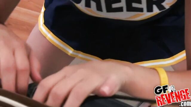 Description: Every guy has fantasized about banging a cheerleader at one point or another. Luckily for this guy, he had the real thing right at home. In this video, he finds his girlfriend in the bathroom getting ready to go to a game. She says that she doesn't want him to distract her but as you can probably guess, he does that and a whole lot more. At one point, you almost think that she'll make it out the door, but the temptation was just too much for her and she gave in to a request for a quickie that turned out to be a little longer than she expected. We didn't get much information along with this submission so we're not sure why these two broke up but one thing seems fairly certain, after this guy finishes on top of her, she had to get ready all over again. There's no doubt that after all the precautions she took to "not get distracted," she was especially late to meet up with her squad.