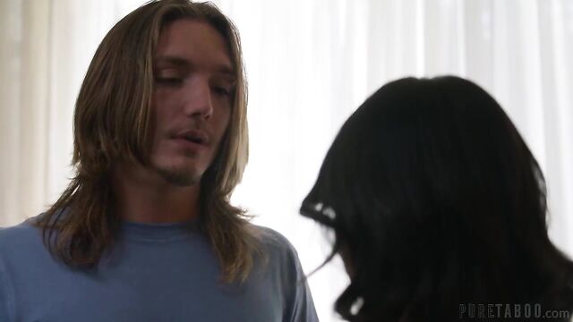 Description:A stepsister, Lyla (Lulu Chu), has been noticing her stepbrother, Mike (Axel Haze), acting suspiciously around their stepmom, Irene (Charlie Forde), so she keeps an eye on him. This leads to Lyla discovering that Mike has been secretly spying on their stepmom while she gets undressed. After seeing him do this on multiple occasions, Lyla finally confronts Mike about it.Mike pleads with her not to tell their stepmom what he's been doing, offering whatever she wants to keep it a secret. That's when Lyla cheekily decides that she'd like to have sex with him. He agrees but is SHOCKED when Lyla starts showing him pictures of their stepmom from her social media page while they fuck! This turns Mike on even more and leads to energetic, wild sex as Lyla taunts and shames him for being a despicable little perv.