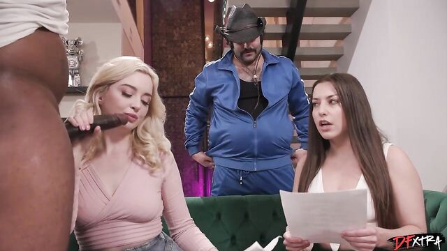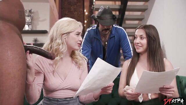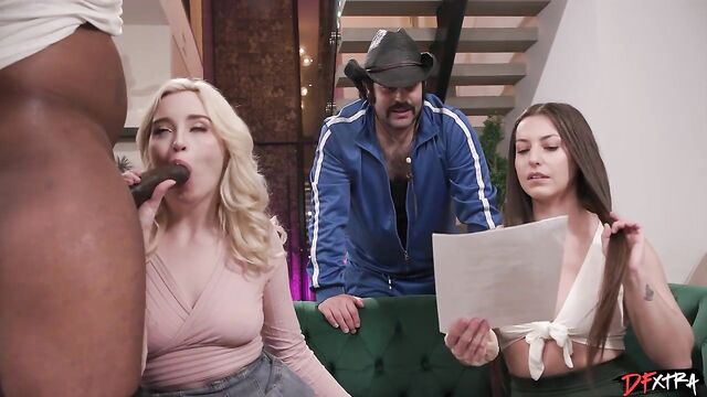 Description: It's going to be a hot day on the porn set with a lesbian, or a girl girl scene as the industry jargon calls it, about to take off with Spencer Bradley and Lexi Lore. Just as the director Freddy Mac is going over the script read through and the gaffer is adjusting lights, Lexi's boyfriend shows up. Turns out Lexi has given Slim Poke a free use pass on her today so he can fuck her whenever or wherever he wants. So Slim just walks in and meets everybody and bends Lexi over and slides in his enormous cunt wrecker. Lexi being the pro she is keeps on working on the dialogue with her coworkers and they keep the day moving as Slim works that pussy. Soon he picks up the slack in conversation as he stuff's Lexi's mouth with his cock. Even the producer stops by and wonders what is going on but when he is told it's a free use pass he realizes such a contract must be honored. Verbal contracts are legal in the state of California and if there is one place that respects the law it's the porn set. So Slim just uses that cunny to his hearts delight as he pumps Lexi's twat all over the place. Before he leaves he blasts her kisser with a blast of hot jizz, pulls up his pants and heads back to chill with his homies.