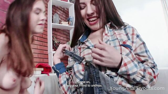 Description: Katti Gold and Linda Weasley are best girlfriends and even roommates. They do everything together from cleaning to flirting with lads. They spend the evening at home, on a comfy couch with their mutual friend, when they decide to do something spicy. Naughty cuties bare their round asses and shake them to tease the lad and make him crave for their hot holes. Sure, the dude surrenders to their charms and pussies almost right away.