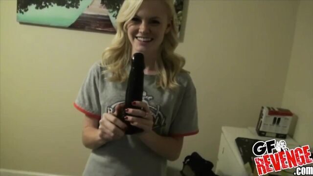 Description:You might have seen this blonde beauty online before. According to the letter that came with this week's submission, she still performs live nude shows on several websites. However, she wasn't very enthusiastic about her upcoming performance on this day, but our submitter took care of that with a little pre-show warm up. He gives her some real cock along with some hardcore dildo action that you can't even see on her private webcam sessions. In his submission letter, he mentions that he doesn't think she would mind much if she ever found out about this video being on GFR. After all, they broke up because all the webcam business took up most of her time and she never wanted to go out and look for what he called, "a real job." Well, his loss is everyone else's gain with this one memoir he kept from his Ex-GF.