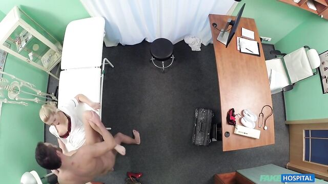 Description:I had a pretty big problem this morning. I wasn't able to see any patients because the examination table was very un-steady. Clearly something had broken! Thankfully, I had this big strapping guy come in to have a look. He walked on in, saw the problem and sought after a solution. I don't know what it is about handy men but they turn me on! He said it would need to be tested, so I showed him whilst bouncing on the table, I saw him catch a glimpse of bouncing tits! I knew then he wanted me. I finally seduced him and he grabbed my tits from behind and kissed my ear, I love that! He put me on the table and started licking my pussy! He was having the best working day of his life! I wanted to return the favour though and pulled his trousers down and sucked on his big dick! Then I wanted him to fuck me from behind. I went over to the desk, bent over and let him thrust his hard cock deep inside my wet pussy! I got him back on the table and started riding him, he couldn't take his eyes off my bouncing tits! I got back on the floor bent over and begged him to fuck from from behind again and cum all over my ass! It was so intense! He finished by doing exactly as I said!