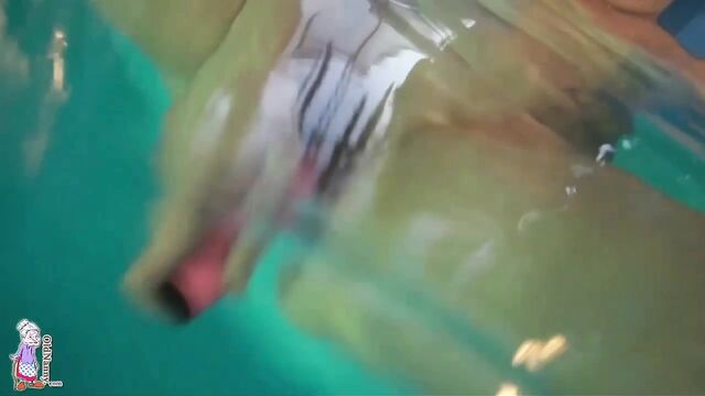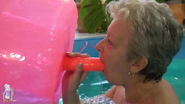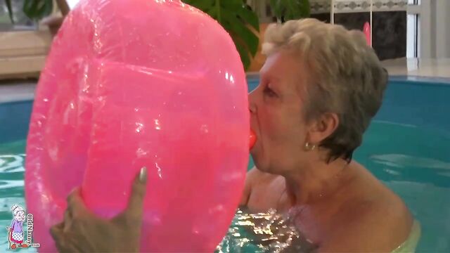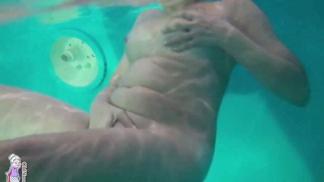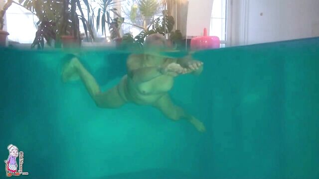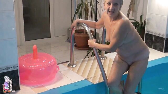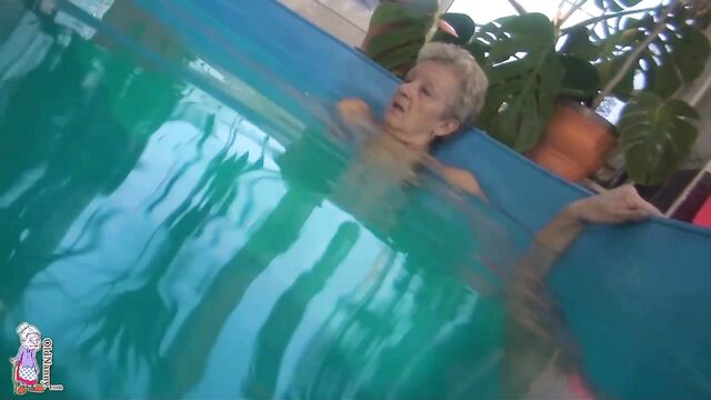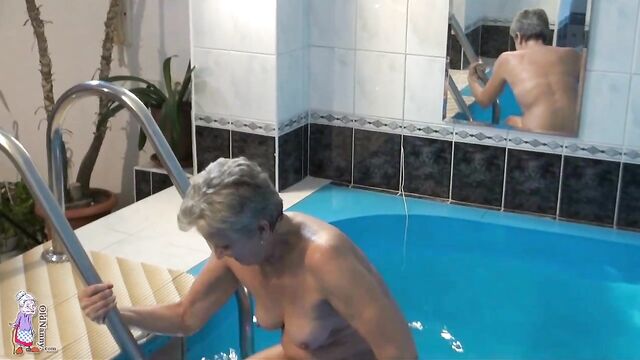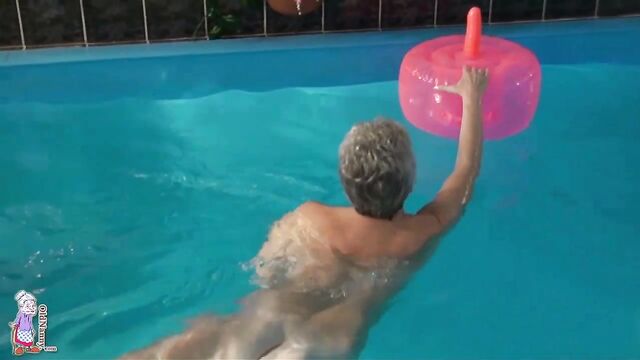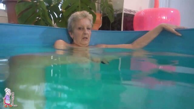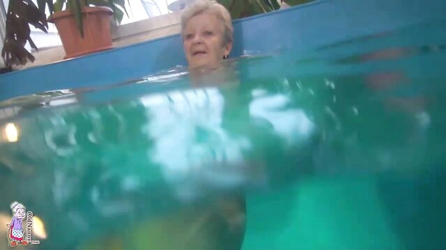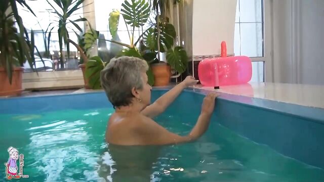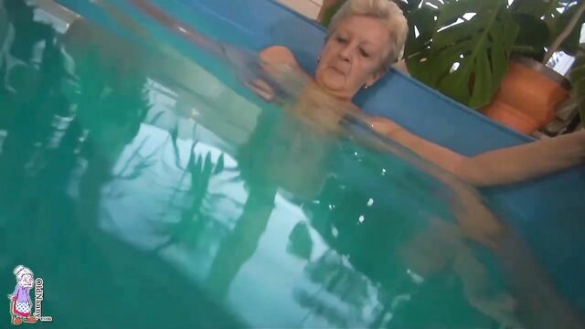 Pool masturbation session with a short-haired blonde mature Jitka