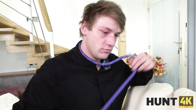 Description:There are just too many hot women out there! I want to fuck someone ASAP!” – those were the thoughts coursing through my head as I was sitting in a park. All of a sudden, I heard an obnoxiously loud lady ordering flower delivery. Would have loved to shut her up on the spot with my cock, I can tell you that much! I had a great idea anyway: since this busty bitch had the audacity to mention her full address in my presence, why don’t I pay her a visit later in the day? When I showed up, my boner was ready to hose her down with pent-up semen, but there was a “but” - her husband. He got laid off from work that day. What a predicament! Everybody knows that everyone has a price and I’m willing to really shell out for his wife’s pussy. “Hey, hubby, here’s your collar – be a good boy while I fuck your wife. Heel!"