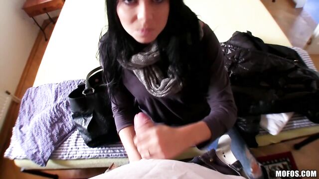 Description: Tomas works his magic on a distrustful shopgirl and gets her to go from cold as ice in a parking lot and walking away to naked in her apartment in the space of a single hard sell conversation. The money might help, but his smooth talk to get his dick in her mouth is impressive.