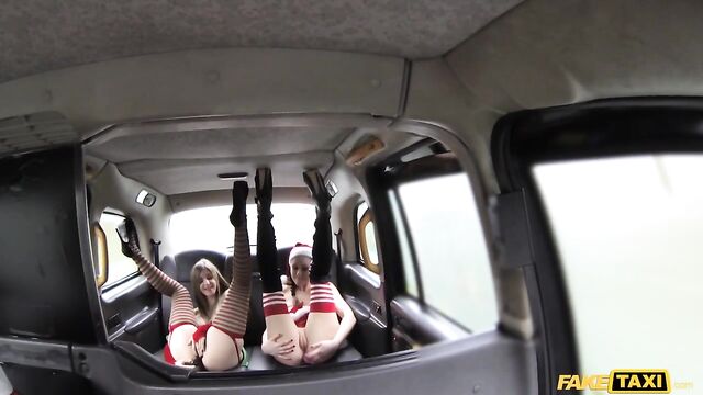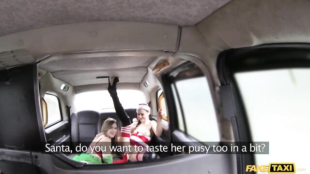 Description:Ho Ho Ho! It's that time of year again and so I put on the Santa outfit to see what I could find. I had received quite a few comments so far in the day, but nothing was taking my fancy until I pulled up next to Tina and Stella dressed up in elf outfits and then my prayers were answered. They were, lets say, in very festive spirits and horny as hell. Then with no time to waste they said they wanted me to get in the back and fuck them both. Of course I wasn't turning this down, but first I needed to get to one of my quiet spots that was on the other side of town. So they started without me. Stella already had a dildo stuck up her arse before she even got in the cab! As they were playing and licking each others pussies it was driving me mad, these two girls are hot and I was more than happy to watch them unwrap my presents until I was able to pull over.