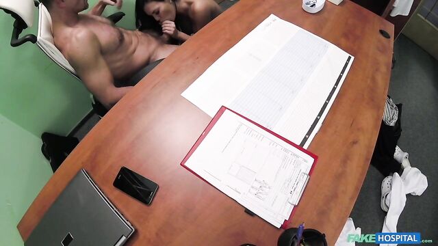 Description: The patient that came in to see me today looked very familiar, and when she said her name was Jasmine Jae it clicked. Of course I knew her, she is a UK Porn actress, whom I wanked off to many times over the years. She had come to the clinic to get a health certificate which she needed to do some porn work in the country. I told her I couldn't do it today, but if she were to come back tomorrow I could make it happen. She needed it today and asked if there were anything we could do to move it along? I implied there could be a way, a sexual way to perhaps get the test done quicker if she was interested? She was definitely interested, as minutes later she had stripped off and was bearing those beautiful 32F tits. I proceeded to bend her over and eat her arse and pussy out over my desk. Then I fucked her over and around my desk and chair. It was plain to see why she is such a good porn actress, as she has real shagging stamina. What a turn on. She finished me off by sucking and wanking my cock hard and fast, this caused me to nearly shoot cum all over my own face. A narrow escape. Rest assured her health test was now paid in full and would be ready in a matter of hours.