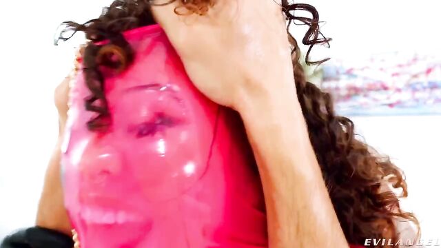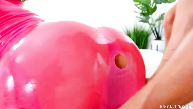 Description: Curly-haired cutie Nico Luva looks glamorously whorish in a tight latex dress hiked up to show off her plump rump and tasty bush. The sex-addicted vixen douses her booty in clear oil and fingers her rectum. Heavily hung, dominant stud Vince Karter grabs the leash attached to Nico's choker, dragging her around the room to let her know who's in charge. He spits into her mouth and kisses her. Vince unleashes his big cock and slams it down Nico's throat. A hole in her latex gives Vince's prick the perfect target -- while she's still wearing her outfit, he snakes his schlong through the opening and roughly sodomizes her! Vince pummels Nico's sphincter, her pretty face shoved into the couch. He smacks and chokes the sweet girl through an extreme anal reaming. Nicole gives a nasty, ass-to-mouth blowjob and a rim job. She frequently flaunts her gaping rectum. The lube-soaked session concludes as Vince rewards Nico with a messy cum facial. Sperm oozing down her cheeks, the collared cutie lewdly thanks Vince.