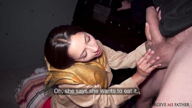 Description: I’d been on the lookout for a beautiful woman all day when sexy Spanish babe Hiba Hakimi just happened to show up. She didn’t speak much English, but my friend was able to translate. Hiba’s husband had cheated on her, so she wanted to fuck a stranger to get revenge. After bringing her inside the van, the horny brunette got on her knees and began sucking hard on my dick, and then I face-fucked her pretty mouth! Once Hiba's pussy was dripping wet, I banged the busty nymph in missionary position before we enjoyed a passionate side-fuck on the van floor. Next, I drizzled oil all over the curvy Euro's sexy ass and banged her hard from behind in doggystyle, and then Hiba straddled my lap, riding my dick in cowgirl and reverse. The tattooed slut’s pussy felt so good that I didn’t even pull out, and I left her with a dripping creampie!