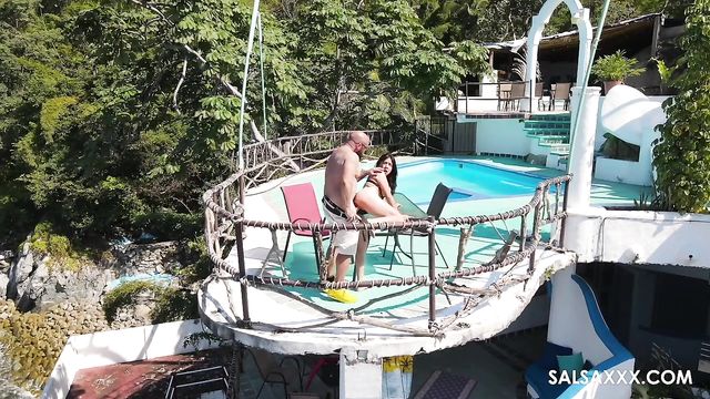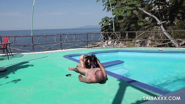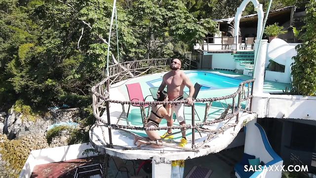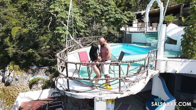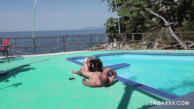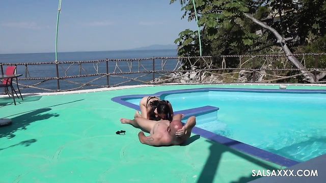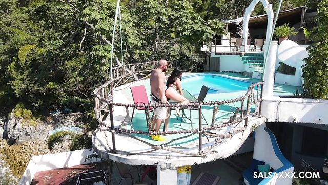Description:This is a big, impressive-looking swimming pool. It has a diving board and everything. It would be nice to think that it was just the right size for the two of them to swim laps in, but the truth is more likely that they were looking for somewhere to fuck instead of swim.