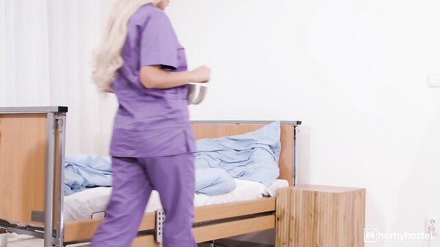 Description:As Ema tends to Freddy's needs, his roaming hands find their way to her voluptuous form. She feigns resistance, but behind closed doors, Ema's fingers herself, unwittingly putting on a show for the observant Dr. Mandingo. The plot thickens when Freddy summons Ema for a sponge bath. His touch ignites her passion, but she sends him off to the bingo game. Nelson seizes the opportunity, disguising himself as a patient to get a taste of Ema's naughty nursing skills. As she searches for a "missed spot" under the sheets, she's in for a surprise: Nelson's massive black cock, begging to be sucked. Freddy returns, and Ema invites him to join the party. The two big black cocks take turns filling her up, covering her face and tits in cum.