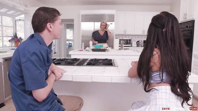 Busty MILF Ryan Keely feels a long wiener in her trimmed pussy