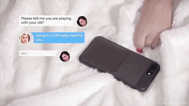 Description:Stunning Czech babe Lovita Fate is mixing tech and sex in this flight of erotic fantasy. The blue-eyed platinum blonde is sitting on her bed, trading texts with a gorgeous brunette lover who has sent her a gift of lingerie. Lovita is wearing it – pantyhose with a stockings, garters and lace panties design, over a pastel-blue lace thong with a string of pearls for the crotch. The thought of this is getting the brunette wet and, when Lovita checks her own pussy, she gets carried away and begins to masturbate. Rolling onto her hands and knees, she grinds her French tip-manicured fingers in her slit – then she slips the pantyhose down and off, and removes her cropped T-shirt to reveal beautiful natural breasts. Lounging back, legs splayed, she stretches aside the pearl thong and fingers her slit, only to be interrupted by another sext. She replies, pedicured toes flexing in excitement as the brunette tells her to use another gift she was sent… "the dildo". This has a futuristic fantasy look – elegantly curved, crystal clear with embedded glitter, and pale blue to match the underwear. Lovita sucks on it, uses it to tease her erect nipples and pierced navel, then slides it inside of her pussy. She tastes her juices off of it then lies back, flaunting a cute clit-hood piercing as she probes and pounds her wet opening. The brunette texts "ORGASM!" and though Lovita is oblivious, she obliges, moaning and gasping as she cums hard. She withdraws the dildo and caresses her snatch to soothe it. Then she receives one final sext from her lover that gets her even more excited...