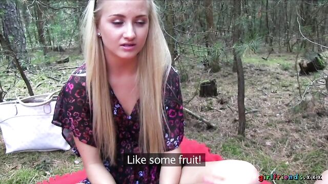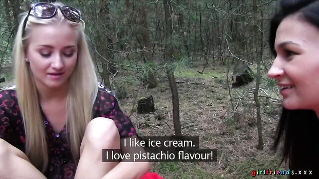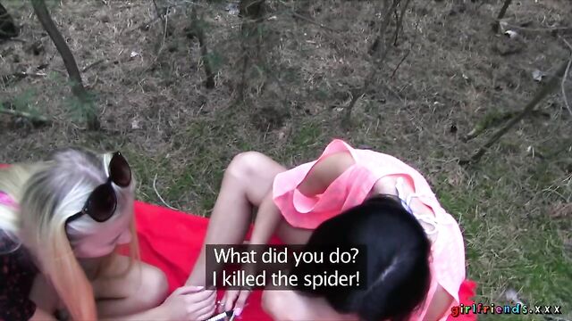 Description: The girls, continuing with their day at the lake, venture in to the unknown surrounding of the nearby woods! They quickly get tired of rambling aimlessly and find a nice spot to put down their blanket. Keira wants to have another taste of Kayla