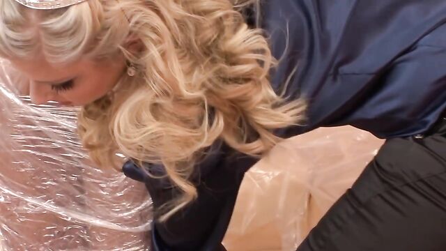 Description:Engel White is one kinky fucker! She's got her lover all bound tight in plastic wrap so she can so whatever she wants with that rock hard cock. See her stroke it, tease it and fuck it while wearing easy access leather chaps and no panties.