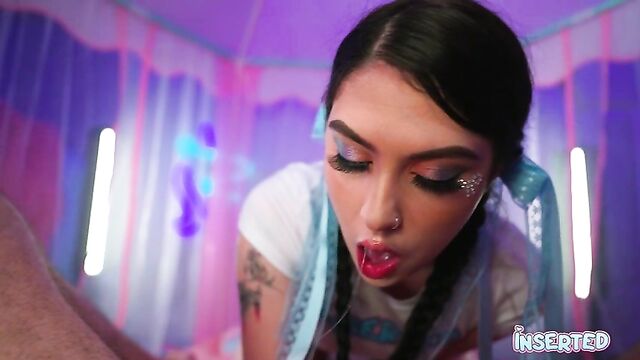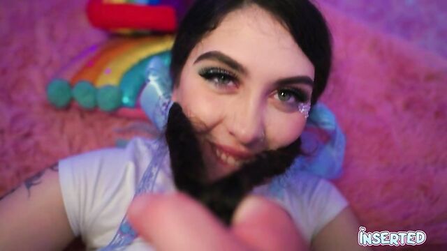 Description:Daydream Daisy, with her three feet long, braided black hair and a white shirt, is the epitome of allure. She sits on a fluffy pink carpet, her blue panties barely concealing her shaved pussy. Her hands roam over her body, teasing and tantalizing. She arches her back, pushing her breasts forward, her white shirt clinging to her every curve. Her fingers trace the edge of her blue panties, slowly pulling them down, revealing her smooth, inviting skin. She leans back as she parts her legs, inviting you to explore her depths. Her moans fill the room, a symphony of pleasure as her fingers dance across her sensitive flesh. Her eyes are locked on yours, beckoning you to join her in this sensual dance. Daydream Daisy is a vision of desire, ready to fulfill your every fantasy.