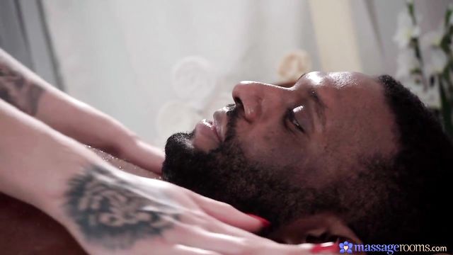 Description: Pretty blonde masseuse Ariela Donovan gives Yves Morgan an oily, sensual massage in the Massage Rooms. Ariela pours oil on Yves' chest and rubs it in, then gets on top of him and sits down. She massages his pecs and stomach, then climbs off to strip herself naked. Ariela strokes and oils Yves' penis, then spreads her pussy and ass for him. Ariela takes Yves inside her cowgirl and his big dick stretches her tight pussy. Fucking her charge while playing with her own clit, Ariela cums hard, then Yves makes her cum again by eating her pussy. Yves bangs Ariela in missionary and then spoon position, and then pulls out and cums all over her pussy