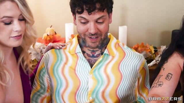 Description:When Small Hands accidentally ends up at the wrong Thanksgiving gathering, horny Ashley Alexander and her friends, Baby Gemini and Beca Barbie, make him feel right at home... and then some! Forget mingling and eating, because to fit right in, Small Hands needs to get down to fucking. After Baby Gemini corners him in the kitchen for a blowjob, he slips away to the bathroom for a quickie with Beca, all while eating in between. The main course, though, is Ashley, who shows she can heat up Small Hands’ pumpkin pie while gobbling up his massive cock.