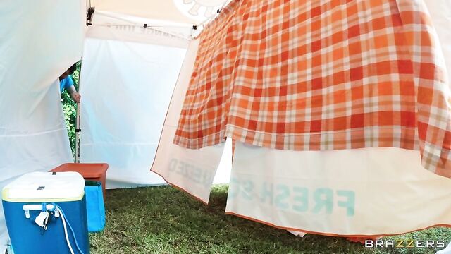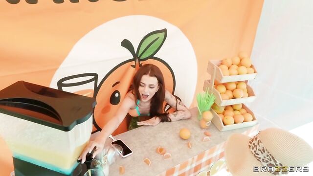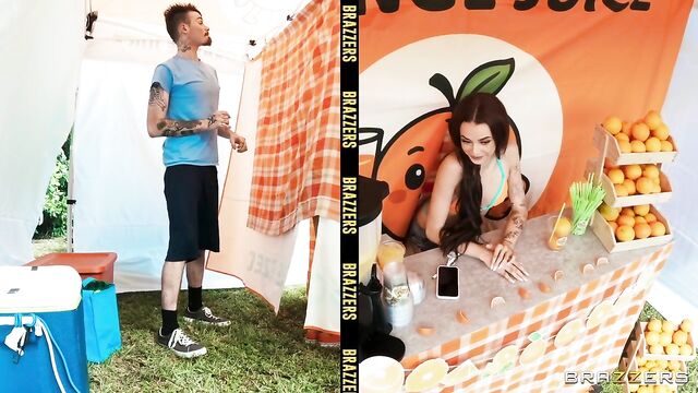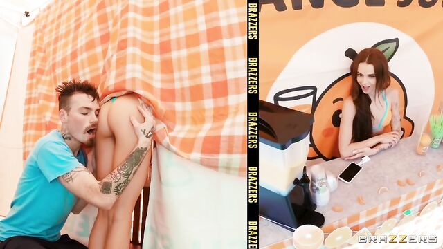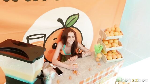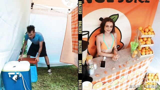 Description: Petite Nikki Nicole is running her Big 'O' Orange stand before a crowd of greedy customers. The customers might be thirsty for orange juice, but horny Nikki is thirsty for some cock! Let’s see how far Nikki can take sneakily fucking tattooed Logan Xander right there at her stand, before the customers catch on.