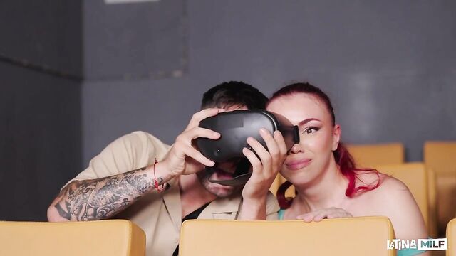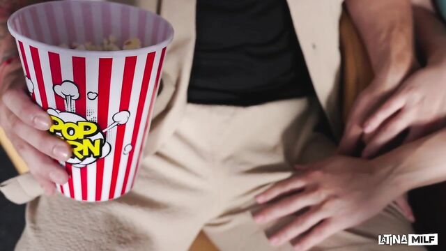 Description:Oktokuro and her boyfriend arrive at the cinema, slipping on their 3D glasses as they settle into plush seats with a bucket of popcorn. The theater swelters with heat, her boyfriend's discomfort evident as he fans himself and signals the attendant unnoticed. He leans in, whispering to Oktokuro, "I'll be right back," before chasing down staff. Papi Rodriguez slides into the vacant seat next to her. Reaching blindly for popcorn, Oktokuro mistakes his crotch for the bucket, her fingers grazing his thickening bulge. Assuming it's her boyfriend, she teasingly rubs his hardening cock through his pants. Arousal surges as her pumping intensifies, leading her to straddle him. Their grunts and sloppy thrusts echo louder, annoying the extras into fleeing the row, leaving the pair to fuck uninterrupted.