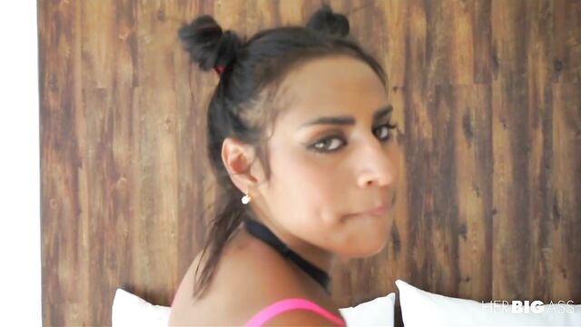 Description: Bootylicious Latina Indira Uma shows off her big booty and twerks. She wants to get Mister Marco's cock deep inside her wet pussy and she succeeds! He plows Indira hard in many positions, giving him an awesome view of that juicy, thick ass.