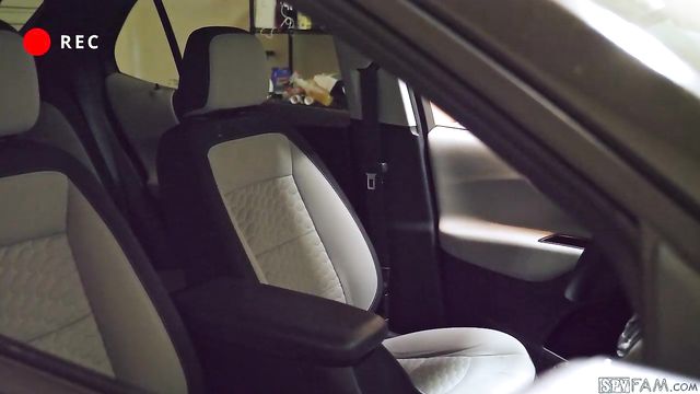 Stepsis gets caught masturbating in the car by her stepbro.