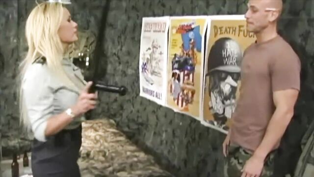 Description:Johnny Sins and his fellow recruits are tired of constantly training for a war that is leading nowhere so they decide to have a little fun partying by dipping in their secret stash of porn and cigarettes. However, the fun stops when the Military Police Sergeant Shyla Stylez crashes the party. Johnny decides to stand up for his fellow soldiers by taking the blame, in consequence Shyla shows him how the rankings of the military really work.
