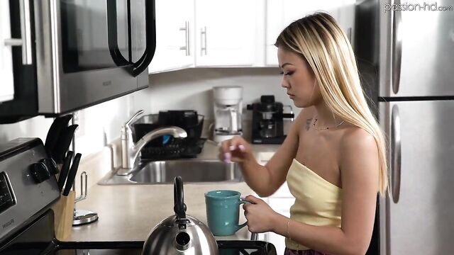 Description:Sexy blonde Asian slut Lulu Chu is so horny that as soon as she arrives at a friends house, she immediately pulls her vibrator out and starts rubbing it all over her tight little pussy. After a few minutes of alone time Lulu is ready to have a big thick cock inside of her. She insists on licking and sucking him off before letting him pound her wet pussy.