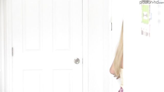 Description: Sexy blonde Asian slut Lulu Chu is so horny that as soon as she arrives at a friends house, she immediately pulls her vibrator out and starts rubbing it all over her tight little pussy. After a few minutes of alone time Lulu is ready to have a big thick cock inside of her. She insists on licking and sucking him off before letting him pound her wet pussy.