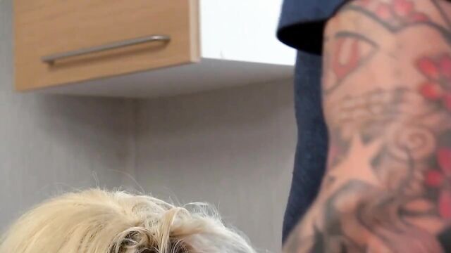 Description:Blonde stunner Brooklyn Blue leaves the rubber gloves by the sink and heads off for an afternoon of cock sucking and hardcore pussy pounding when her guy surprises her by coming home for lunch to cum.