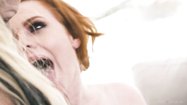 Stunning Barbie Sins and Ella Hughes - kissing scene - Harmony Films