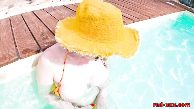 Pool smut with smiling Red Xxx from Red-XXX