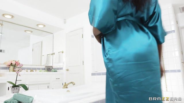 Description: Osa Lovely is looking hot. Her all-natural titties and perfect round ass are ripe for the taking. When getting ready for a bath, she realizes she forgot one thing, her phone. She robes up and heads to the living room to find it. Her new stepson has his horned-up buddy over, Juan Loco, and he's quick to notice the smoke show of a stepmom, Osa, right away. Hard not to when her titty is popping right out of her robe! After getting some upskirt action, Juan decides to hit the head in hopes of seeing more of what’s under Osa's robe. Juan discovers her bubble bath and takes the leap to hide his hard cock in the warm water. Osa returns and gets soapy in the suds only to discover Juan's dick bobbing at the surface! It's a good thing she likes his cock. College guys, they're all the same. Lucky lil horndogs, am I right?