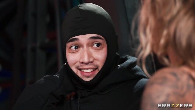 Description: Ryan Conner is a sexy dominatrix who’s enjoying a session with her sub, Baphi Babi, when suddenly she hears a racket coming from her otherwise empty house. Ryan investigates and discovers Juan Loco attempting a B&E. Ryan decides to make Juan her next plaything, and after a light tie up and tease session with Baphi, she takes his dick just for herself.